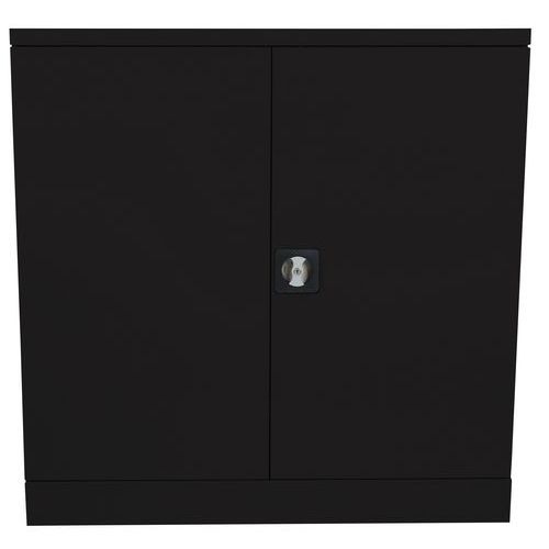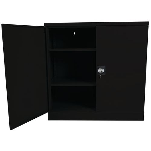 Niska metalowa szafa przeznaczona do odkładania segregatorów i dokumentów. Drzwi skrzydłowe z możliwością otwarcia do kąta 180°. Wyposażona w dwie półki umożliwiające przejrzystą organizację dokumentów. Nośność maksymalna na półkę wynosi 60 kg. Możliwość zamknięcia na klucz zapewnia większe zabezpieczenie dokumentów. Szybki i łatwy montaż bez konieczności użycia narzędzi.