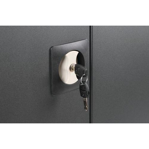 Komoda aktowa przeznaczona do odkładania segregatorów i dokumentów. Drzwi skrzydłowe z możliwością otwarcia do kąta 180°. Wyposażona w dwie półki umożliwiające przejrzystą organizację dokumentów. Nośność maksymalna na półkę wynosi 60 kg. Możliwość zamknięcia na klucz zapewnia większe zabezpieczenie dokumentów. Szybki i łatwy montaż bez konieczności użycia narzędzi.