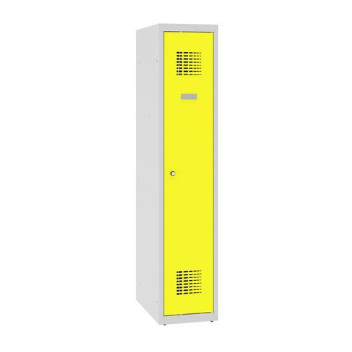 Niższa szafka szatniowa szkolna, 1 słupek, 300 mm, szara/żółta, zamek cylindryczny