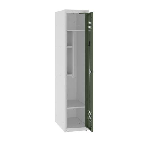 Niższa szafka szatniowa szkolna, 1 słupek, 300 mm, szara/zielona, zamek cylindryczny