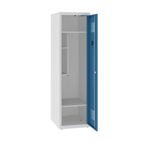 Niższa szafka szatniowa szkolna, 1 słupek, 400 mm, szara/niebieska, zamek cylindryczny