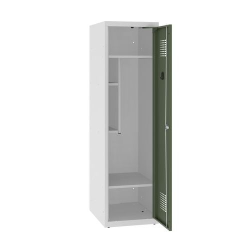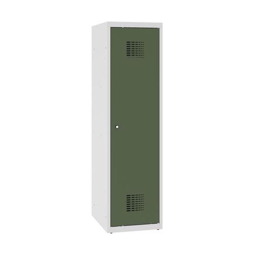 Niższa szafka szatniowa szkolna, 1 słupek, 400 mm, szara/zielona, zamek cylindryczny
