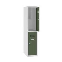 Niższe szafki szatniowe szkolne, 2 przedziały, 300 mm, zamek obrotowy