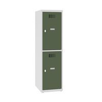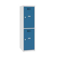 Niższe szafki szatniowe o konstrukcji spawanej, z dwoma odrębnie zamykanymi boksami.