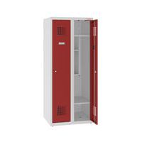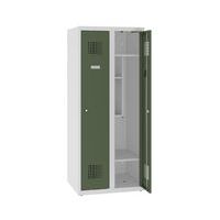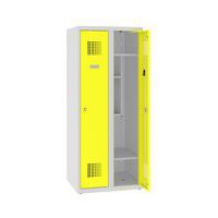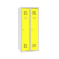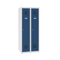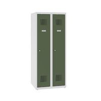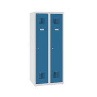 Niższe szafki szatniowe szkolne, 2 słupki, 300 mm, zamek cylindryczny ryglowany w trzech punktach