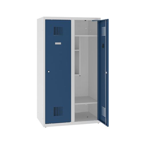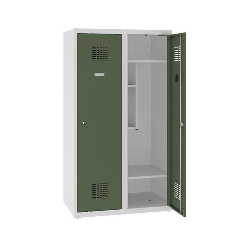 Dwuprzedziałowe szafki szatniowe o obniżonej wysokości. Mogą być używane w szkołach przez uczniów nauczania początkowego.