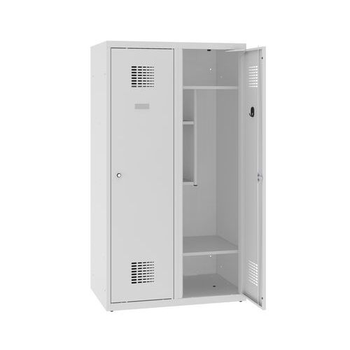 Dwuprzedziałowe szafki szatniowe o obniżonej wysokości. Mogą być używane w szkołach przez uczniów nauczania początkowego.
