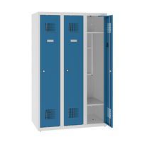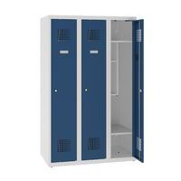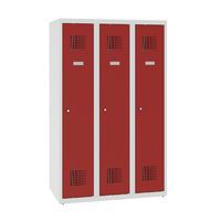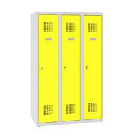 Niższe szafki szatniowe szkolne, 3 słupki, 300 mm, zamek cylindryczny