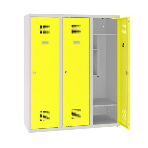 Niższe szafki szatniowe szkolne, 3 słupki, 400 mm, zamek cylindryczny