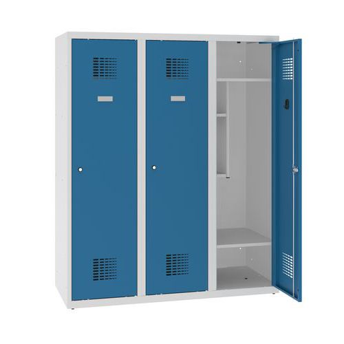 Niższe szafki szatniowe szkolne, 3 słupki, 400 mm, zamek cylindryczny