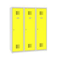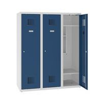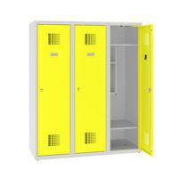 Trzydrzwiowe szafki szatniowe o obniżonej wysokości. Mogą być używane w szkołach przez uczniów nauczania początkowego.