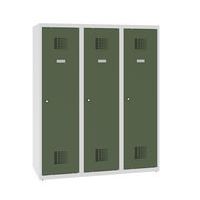 Niższe szafki szatniowe szkolne, 3 słupki, 400 mm, zamek cylindryczny ryglowany w trzech punktach