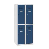Niższa szafka szatniowa szkolna, 4 przedziały, 300 mm, szara/ciemnoniebieska, zamek cylindryczny