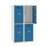 Niższe szafki szatniowe szkolne, 4 przedziały, 400 mm, zamek cylindryczny