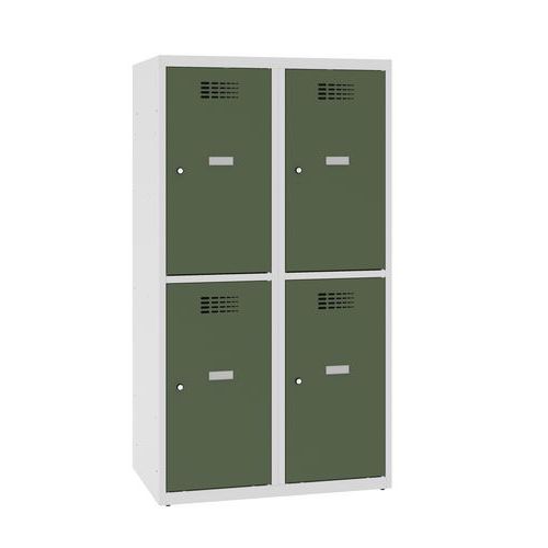 Niższe szafki szatniowe szkolne, 4 przedziały, 400 mm, zamek cylindryczny