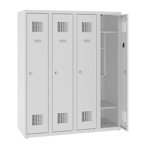 Niższe szafki szatniowe szkolne, 4 słupki, 300 mm, zamek cylindryczny