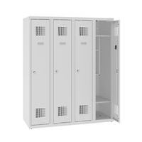 Niższe szafki szatniowe szkolne, 4 słupki, 300 mm, zamek cylindryczny ryglowany w trzech punktach