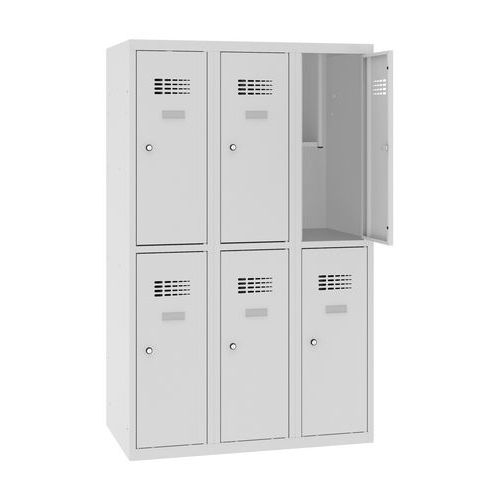 Niższe szafki szatniowe szkolne, 6 przedziałów, 300 mm, zamek cylindryczny