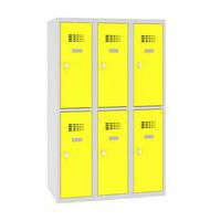 Niższe szafki szatniowe szkolne, 6 przedziałów, 300 mm, zamek obrotowy