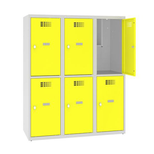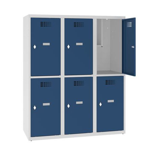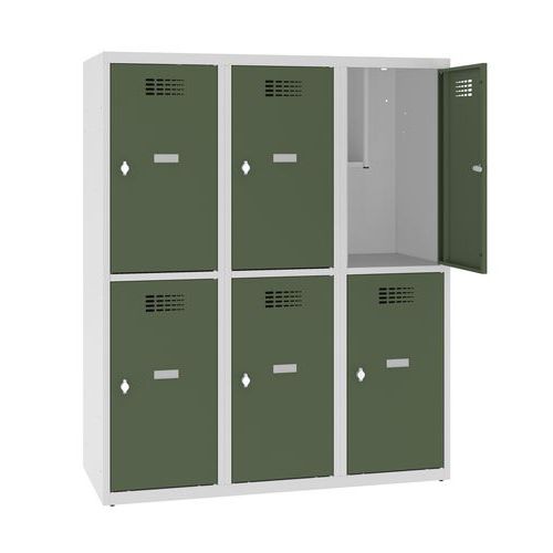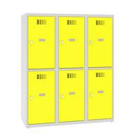 Niższe szafki szatniowe, z sześcioma oddzielnie zamykanymi przedziałami.