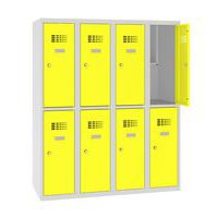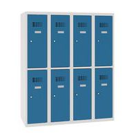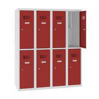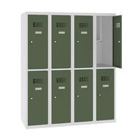 Niższe szafki szatniowe szkolne, 8 przedziałów, 300 mm, zamek cylindryczny