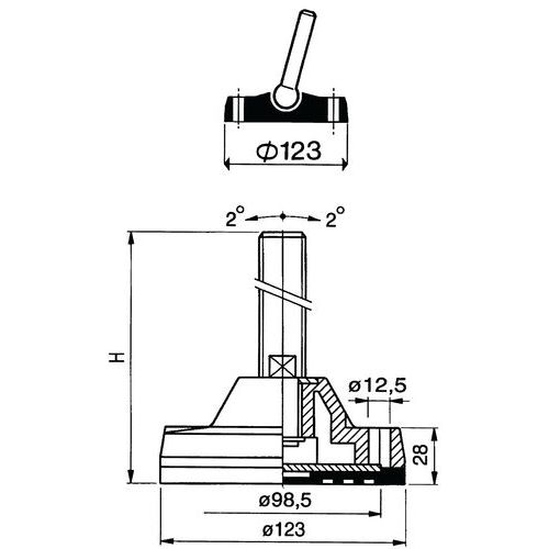 Noga regulowana z poliamidu, średnica podstawy 123 mm, materiał pręta - stal