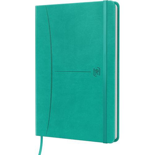 Notatnik Oxford Signature z oprawioną oprawą i kwadratami 5x5 mm. Wyposażona jest w płaski, kolorowy, elastyczny pasek zabezpieczający zawartość. Z zaokrąglonymi rogami, aby zapobiec uszkodzeniu strony. Dzięki zakładce dopasowanej kolorystycznie do notesu łatwiej odnajdziesz swoje notatki.