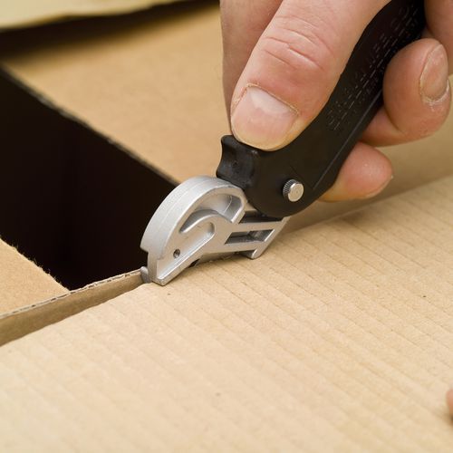Nóż do cięcia folii i kartonów z ostrzem wymiennym. Schowane ostrze bez ostrych szpiców zapewnia maksymalne bezpieczeństwo użytkownika i produktu. Praktyczny otwór do zawieszenia noża. Zalecane zastosowanie do kartonów, folii elastycznej i typu stretch, taśmy klejącej oraz plastikowej taśmy ściągającej. Wykonane w UK