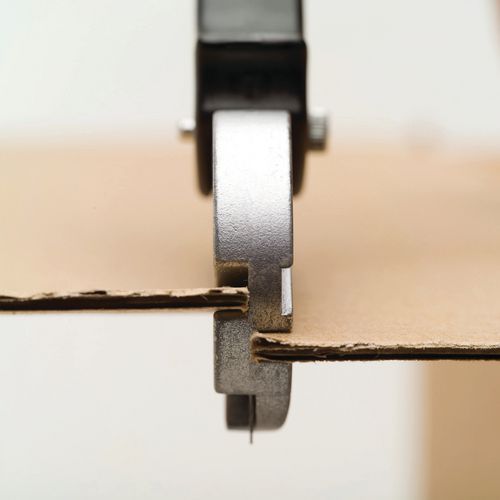 Nóż do cięcia folii i kartonów z ostrzem wymiennym. Schowane ostrze bez ostrych szpiców zapewnia maksymalne bezpieczeństwo użytkownika i produktu. Praktyczny otwór do zawieszenia noża. Zalecane zastosowanie do kartonów, folii elastycznej i typu stretch, taśmy klejącej oraz plastikowej taśmy ściągającej.