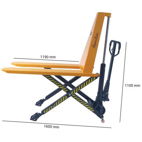 Nożycowy wózek paletowy Manutan Expert, do 1 000 kg, wysokość podnoszenia 800 mm