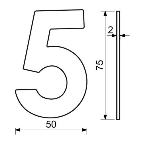 Numer ze stali nierdzewnej w projekcie 2D, wysokość 75 mm, znak „5”