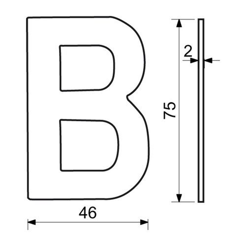 Numer ze stali nierdzewnej w wykonaniu 2D, wysokość 75 mm, litera „B”