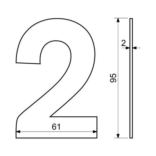 Numer ze stali nierdzewnej w projekcie 2D, wysokość 95 mm, znak „2”