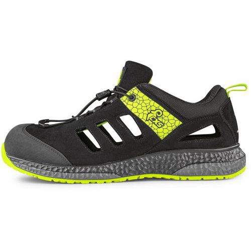 Wytrzymałe, wygodne i zaprojektowane do wymagających warunków. Ten perforowany, niski but z ochroną ESD, elementami odblaskowymi i systemem szybkiego wypinania wyróżnia się cholewką ze szczotkowanej mikrofibry. Podszewka z oddychającej siateczki i wkładka HI-POLY zapewniają maksymalny komfort przez cały dzień. Wzmocnienie pięty z mikrofibry i gumowa osłona palców zwiększają trwałość i odporność najbardziej obciążonych części buta. Cholewka jest szybkoschnąca i łatwa w pielęgnacji. Podeszwa wykonana z połączenia poliuretanu i gumy zapewnia doskonałą stabilność i bezpieczeństwo – jest antypoślizgowa, antystatyczna, odporna na oleje i ciepło kontaktowe do 300°C. Ochrona: Bez wzmocnionego palca Akcesoria odblaskowe: Tak Rozmiar: 37-48 ESD