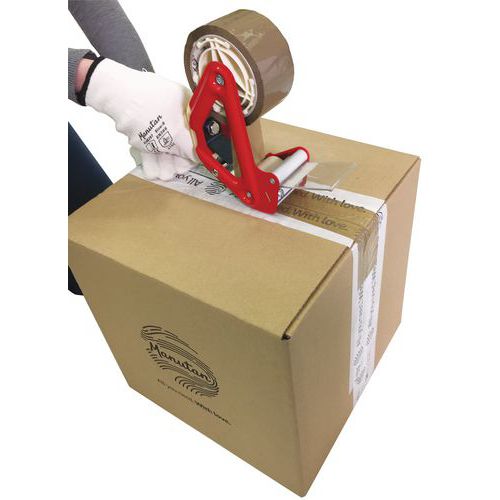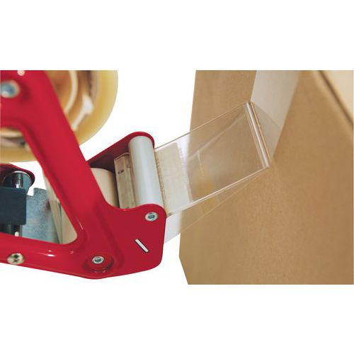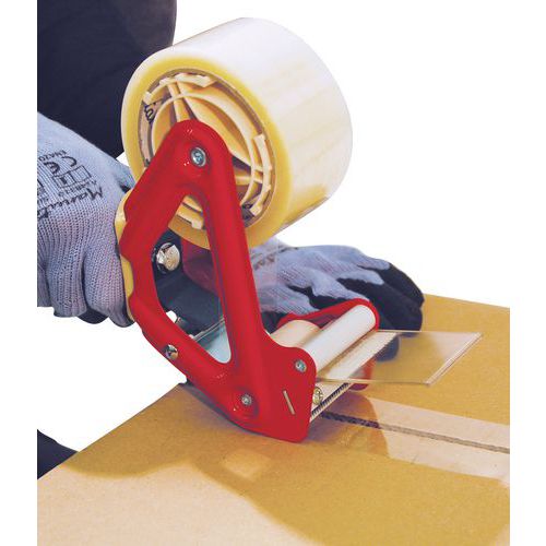 Ręczna odwijarka taśmy klejącej z ergonomiczną rękojeścią i regulowaną blokadą. Przeznaczona do taśmy o szerokości do 50 mm.