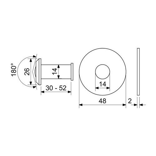 Ognioodporny wizjer do drzwi ze szklaną soczewką w komplecie. 2 szt. podkładek