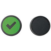 - Okrągły magnes z symbolem haczyka lub gwizdka, pokazujący np. prawidłowe rozwiązanie lub wykonane zadanie. Odważne kolory zapewniają dobrą widoczność.