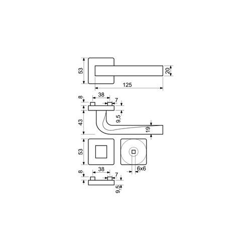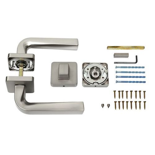 - Okucia blokujące na rozetach kwadratowych, ze sprężyną powrotną klamek.