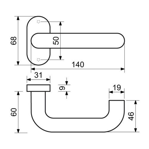 | Nazwa produktu | Okucia ze stali nierdzewnej na owalnych rozetach ze sprężyną powrotną klamki |