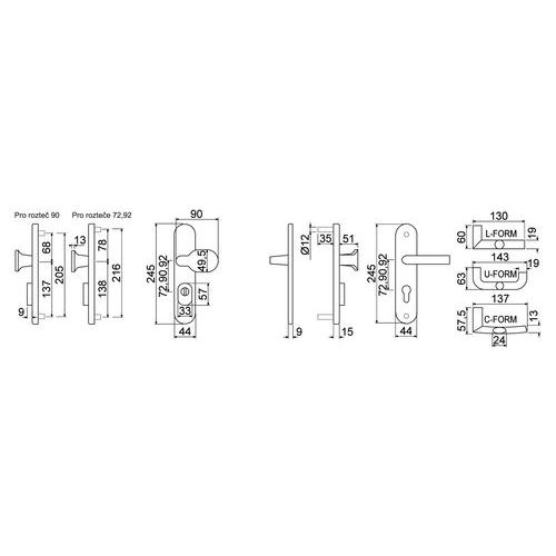 Okucie bezpieczne aluminiowe R701, klamka/klamka z nakładką wpuszczaną, ZB.72, TB3