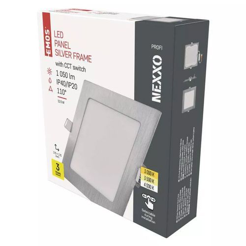 Oprawa wpuszczana LED Emos NEXXO, kwadratowa, 12,5 W, z regulacją CCT, srebrna