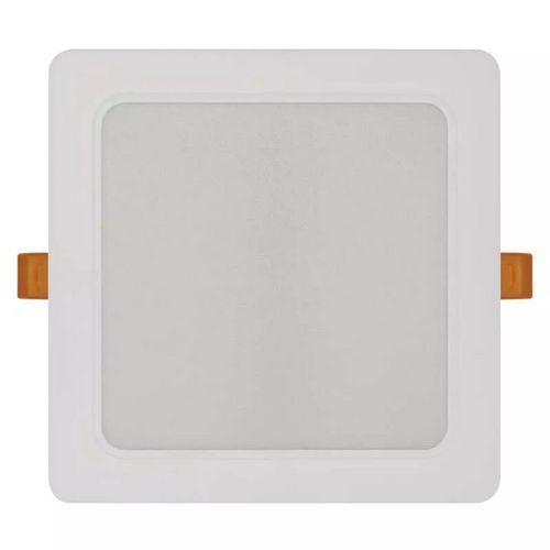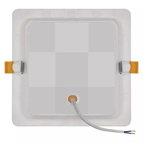 - Kwadratowe lampy wpuszczane LED z plastikową białą ramką.