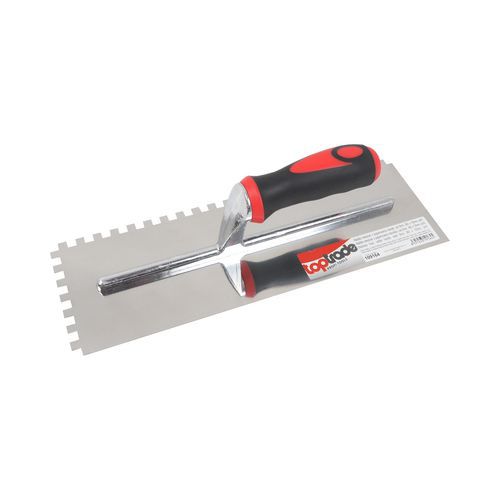 Paca ze stali nierdzewnej TOPTRADE, z podgumowaną rączką, ząb 8 mm, 360 x 120 mm, profesjonalna