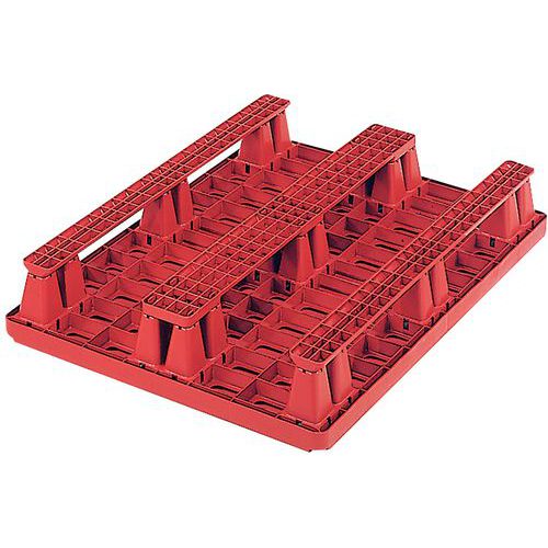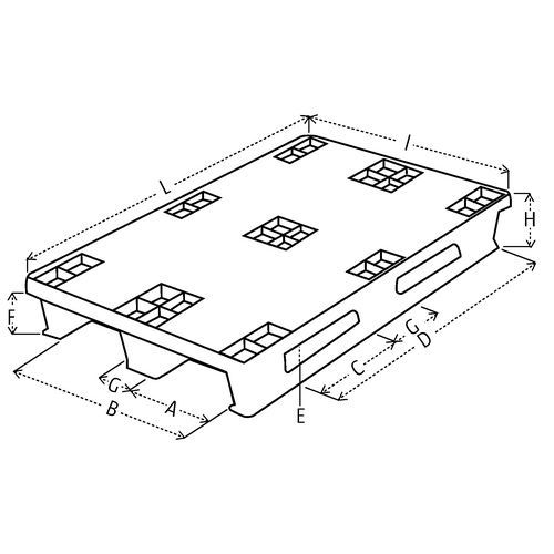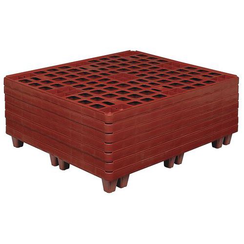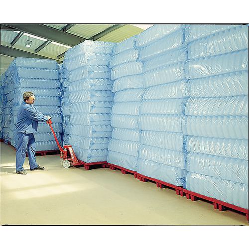 - Paleta z tworzywa sztucznego o standardowych wymiarach do transportu, przechowywania i przenoszenia.