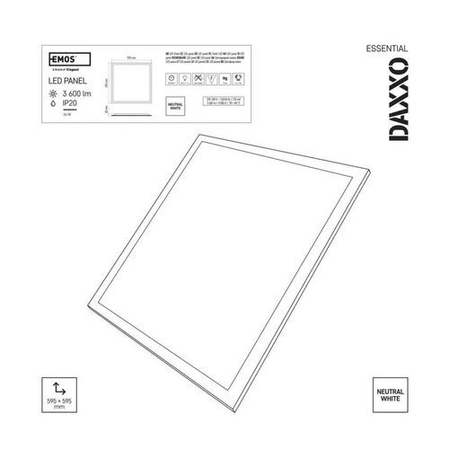 | Nazwa produktu | Panel LED DAXXO backlight 60 x 60, kwadratowy, wpuszczany, biały, 36 W, neutralna biel |