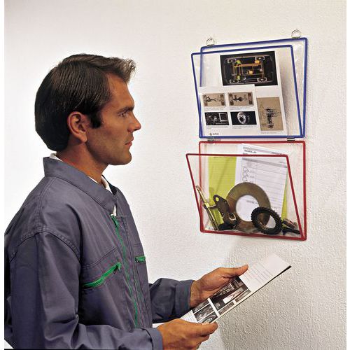 - Przezroczyste ramki informacyjne A4 z dwoma uchwytami, w różnej kolorystyce.