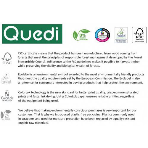 | Nazwa produktu | Papier ksero QUEDI ESSENTIAL A4, A4, klasa C, 80gsm, 500ark. |