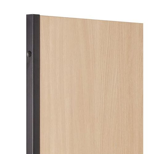 Wykonane z płyt laminowanych o grubości 16 mm.Metalowe profile w rozmiarach 2,5 x 2 cm, pokryte czarną farbą epoksydową.