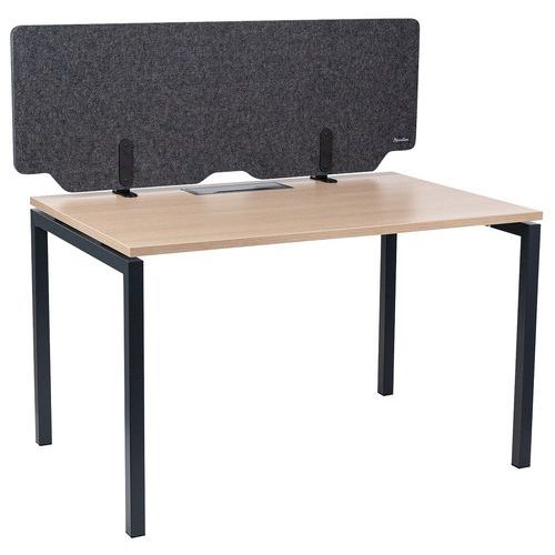 Elastyczne przegrody stołowe, które zapewniają prywatność i pochłaniają dźwięk. Ekrany są wolnostojące i można je łatwo przenosić w razie potrzeby. Wycięcia ułatwiające prowadzenie kabli elektrycznych. 2 eleganckie i ponadczasowe kolory. Gwarancja producenta dla klienta : 10 lat