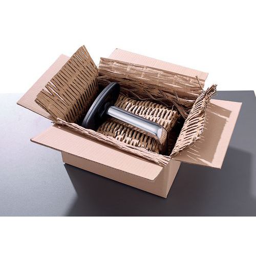 - Przecinarki do tektury w jednym kroku zamieniają zużytą tekturę w materiał opakowaniowy, idealny zarówno do celów ochronnych, jak i wypełniających.